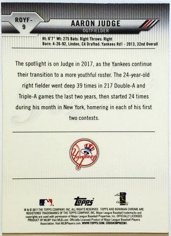 Aaron Judge Rookie Refractor 2017 Bowman Chrome #ROYF-9, Yankees, MVP