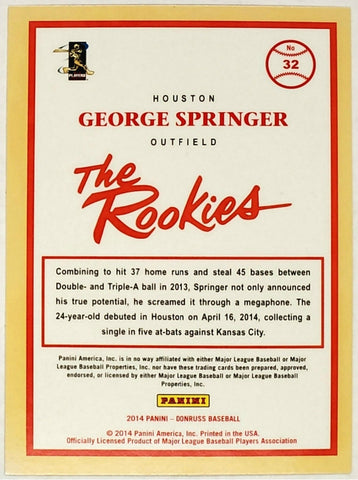 George Springer Rookie 2014 Donruss "The Rookies" #32 Houston, Toronto