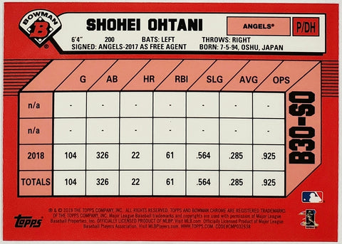 Shohei Ohtani Refractor "1989" Retro 2019 Bowman Chrome #B30-SO Angels