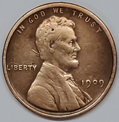 1909 VDB 1¢ Lincoln Wheat Cent Coin, Semi-Key Date, 1st Year Penny